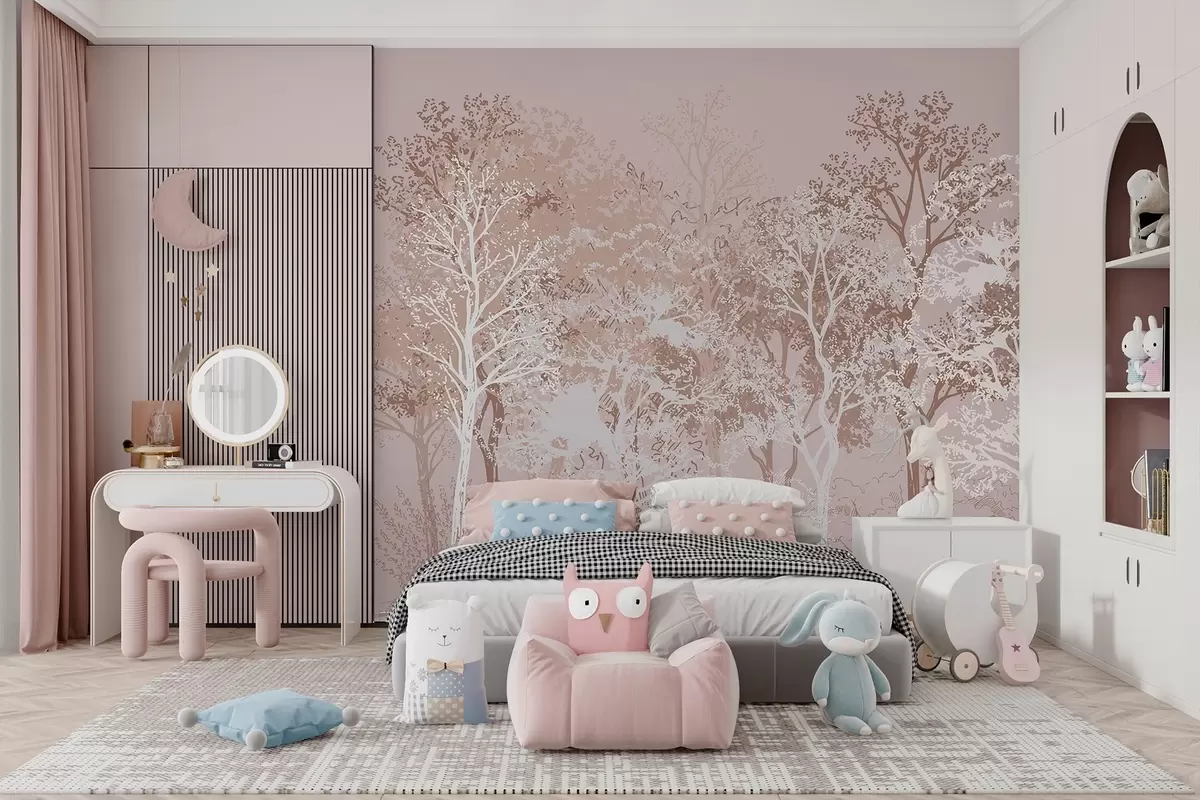 Fototapeten Bäume im Wald, Minimalismus, Natur, beige Farbpalette N° w02930
