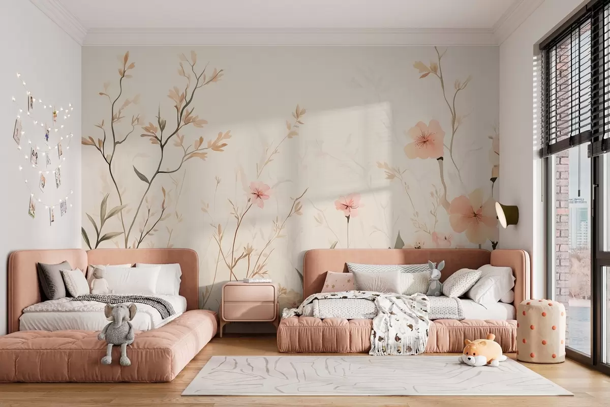 Fototapeten wildblumen mit Pfirsichblüten N° w03009