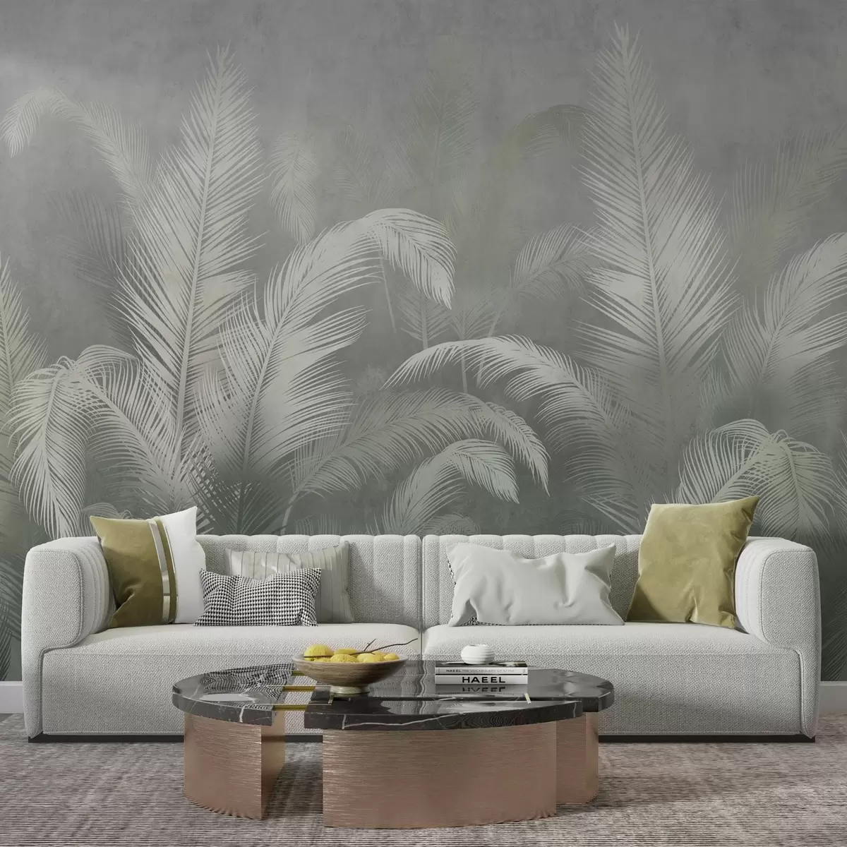 Fototapeten Tropische Palmenblätter im Grunge-Stil in grüner Farbe N° w03250v2