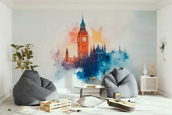 Fototapeten aquarellzeichnung von Big Ben auf hellem Hintergrund N° w03287
