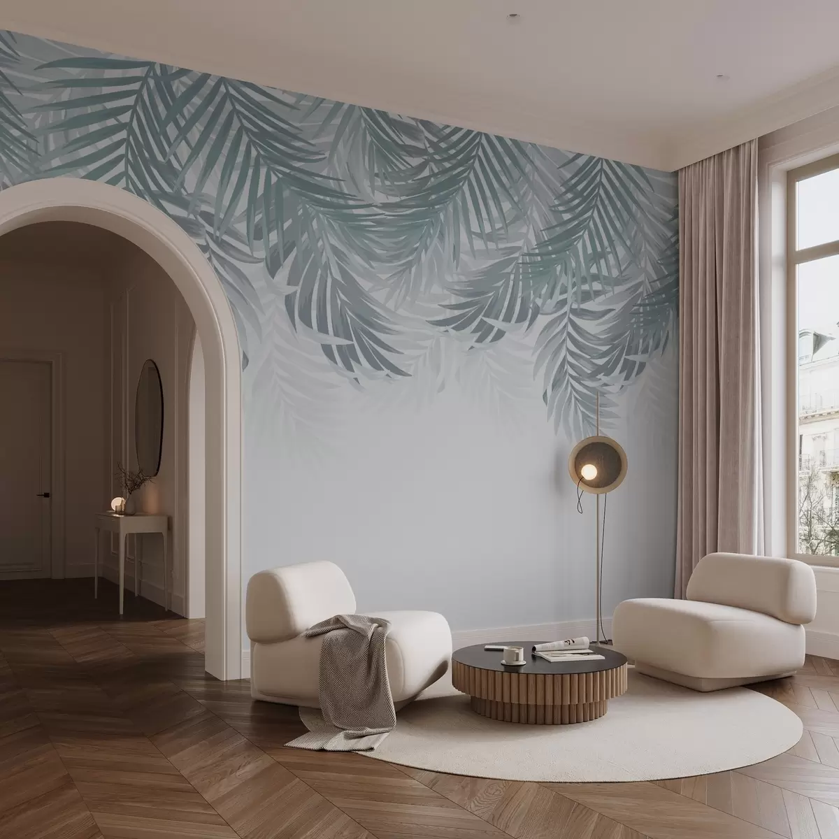 Fototapeten Türkisfarbene Palmenblätter von oben N° w03294v1