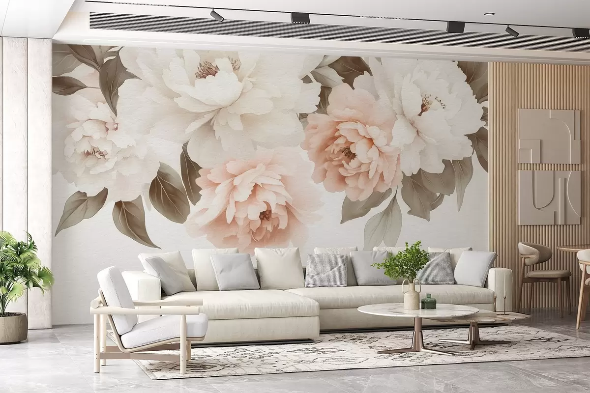 Fototapeten Zarte Aquarell-Pfingstrosen im Vintage-Look N° w03317
