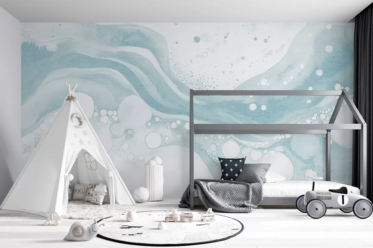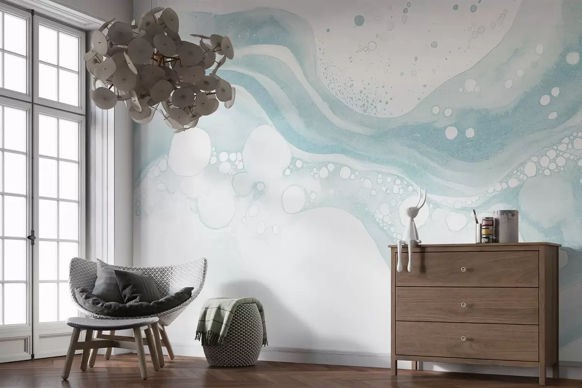 Fototapeten Aquarell-Stil Abstraktion Zeichnung, flüssige Kunst, blaue Farbe N° w03403v1