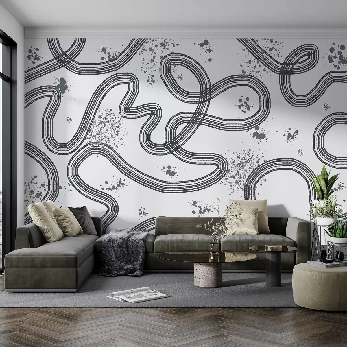 Fototapeten Strichzeichnung, Farbspritzer, Minimalismus, graue Farbe N° w03408v2