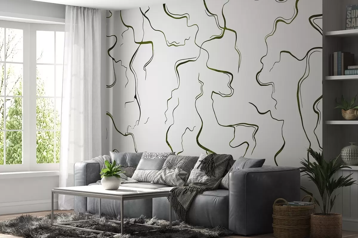 Fototapeten Geometrische Linien, Tusche-Stil, Abstraktion, grüne Farben N° w03436