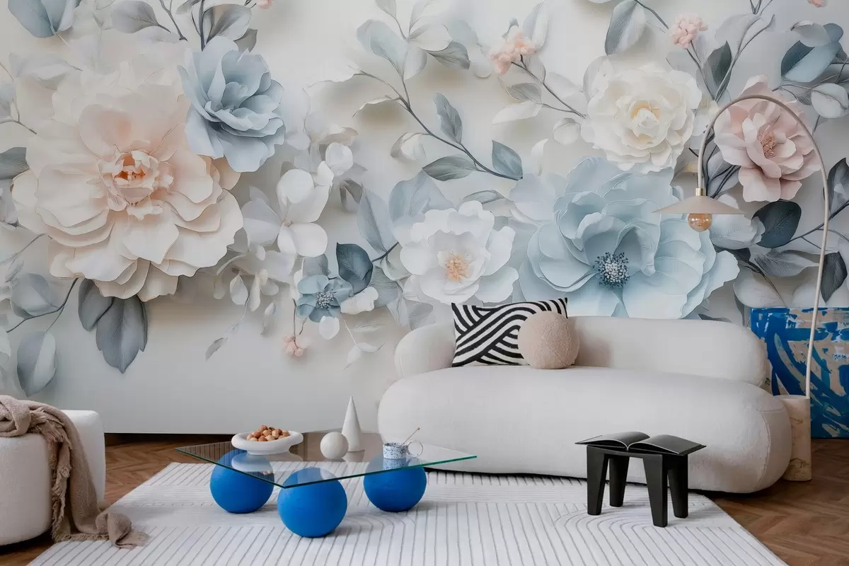 Fototapeten zarte, luftige Blumen mit Volumeneffekt im Stil der Ölmalerei N° w03457