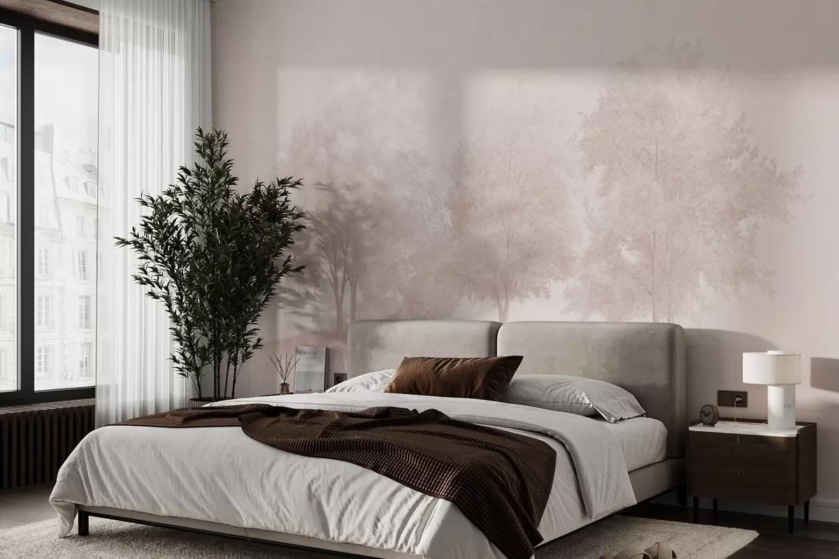 Fototapeten Blossom Bäume, Frühling, Bleistift-Stil Zeichnung, rosa Farben, Natur N° w03549