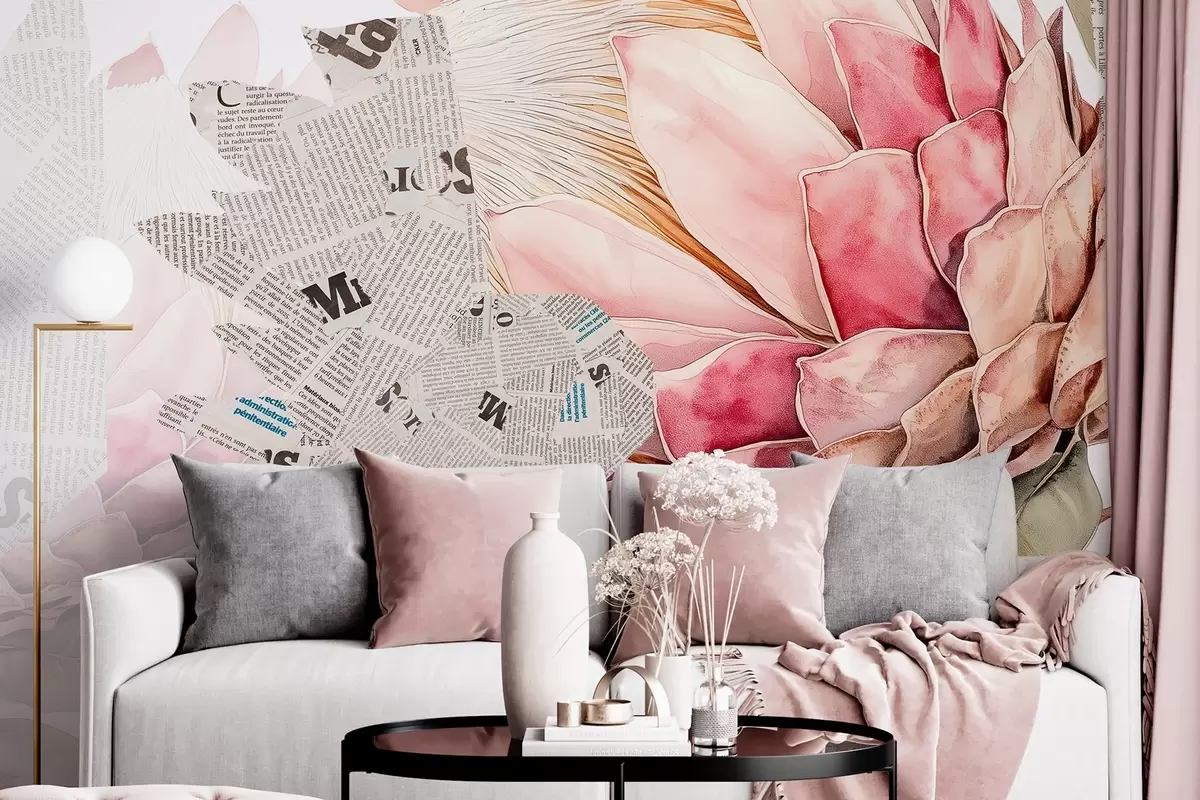 Fototapeten Protea Blumen, Zeitungskunst, floral, tropisch, natürliche Farben N° w03667