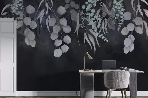 Fototapeten Tropische Blätter auf dunkelblauem Hintergrund, floral N° w03752v2
