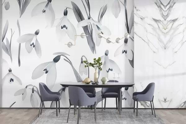 Fototapeten Schneeglöckchen Blumen in Aquarell-Stil, graue Farben N° w03754v1