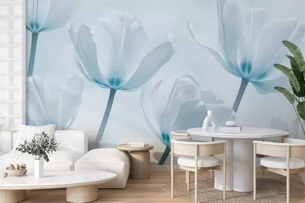 Fototapeten Schöne Tulpen, blumig, blaue Farben, Realismus N° w03877v1