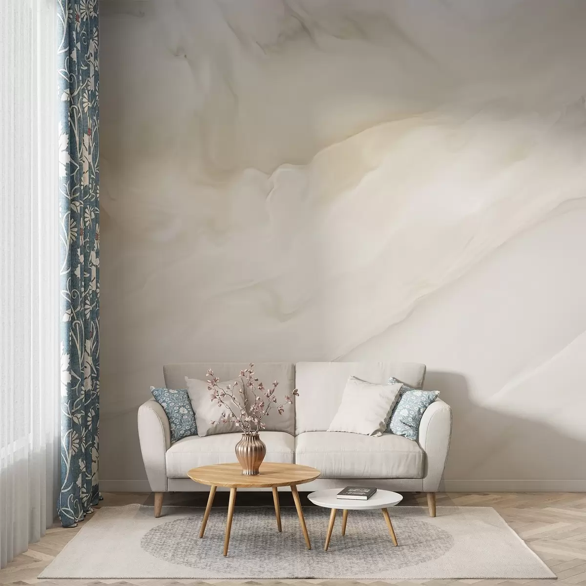 Sie können die Tapete sehr vorsichtig mit einem leicht feuchten Schwamm reinigen. Wir raten jedoch davon ab, die Tapete zu schrubben oder Reinigungsmittel zu verwenden, da dies die Oberfläche und die Farben der Tapete beschädigen kann.