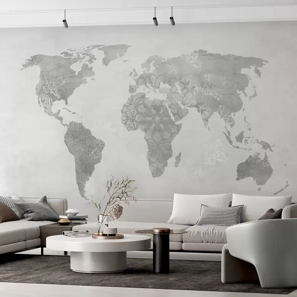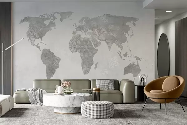 Fototapeten Weltkarte mit Muster, monochrome Farbtöne N° w03954v1