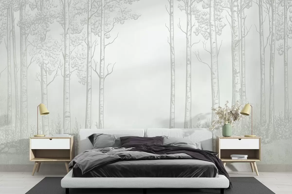 Fototapeten Wald mit Birken, Minimalismus, Natur, grüne Farbpalette N° w04009v1