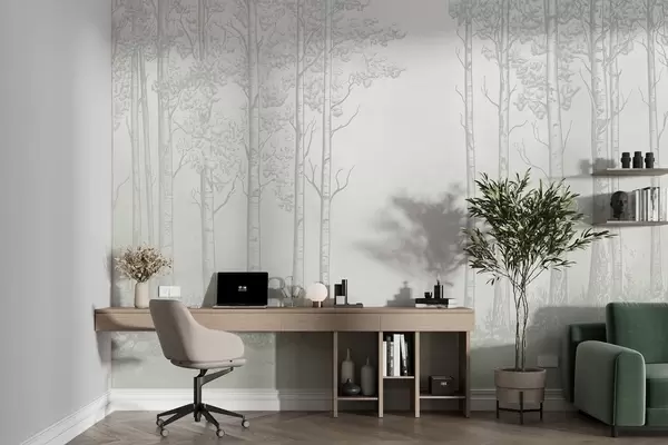 Fototapeten Wald mit Birken, Minimalismus, Natur, grüne Farbpalette N° w04009v1