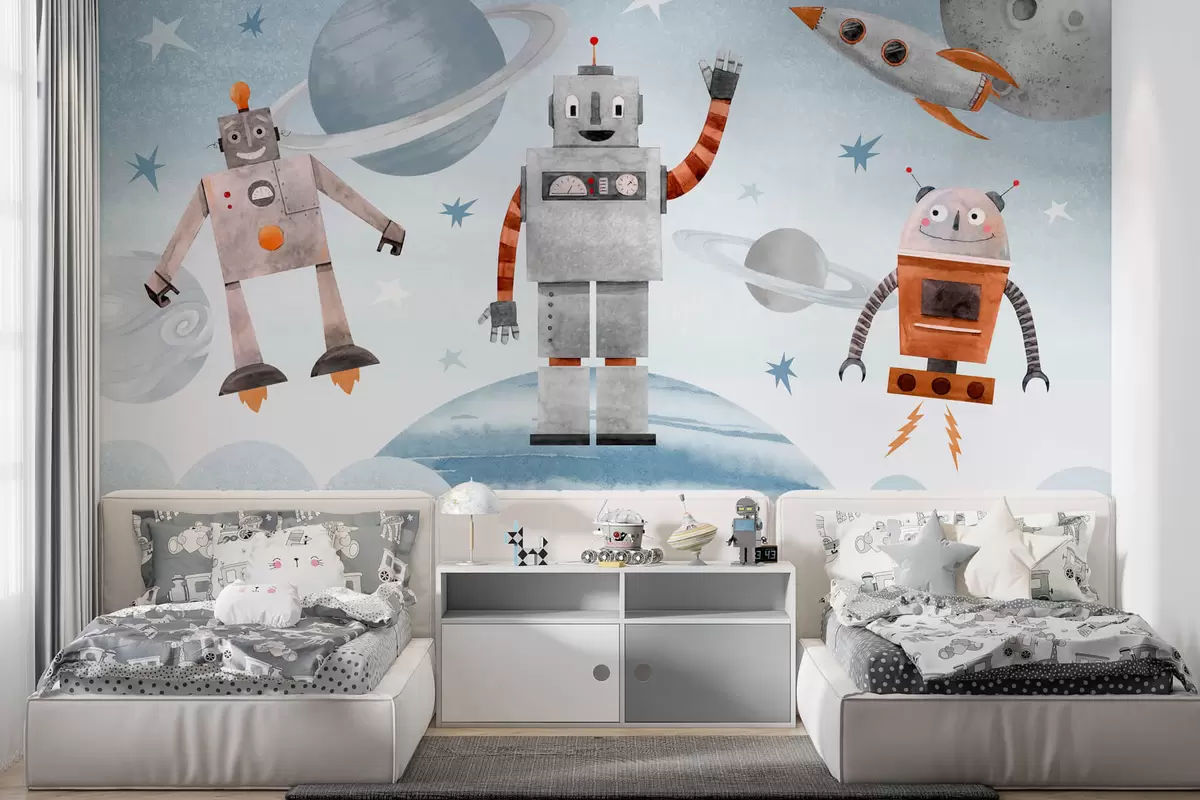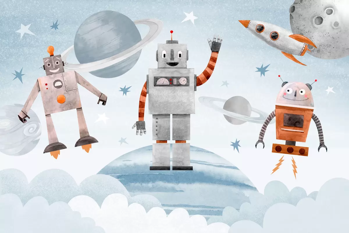 Fototapeten Roboter im Weltraum im Aquarellstil N° w04016