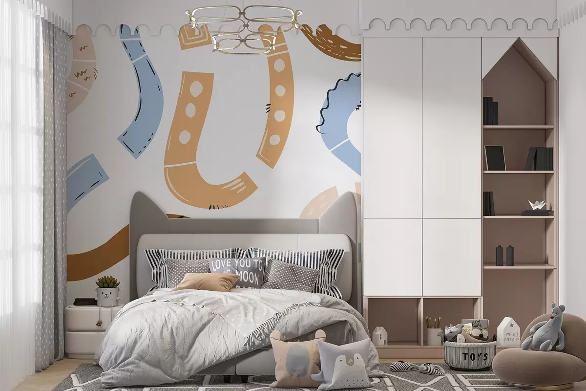 Fototapeten Abstrakte Zeichnungen, jugendlich, Kritzeleien, braun, blau, rosa N° w04066