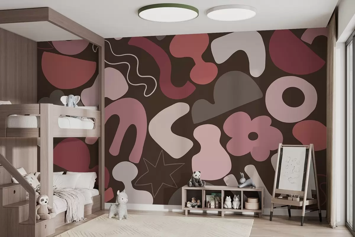 Fototapeten Geometrische Figuren, jugendlich, Abstraktion, dunkler weinroter Hintergrund N° w04067