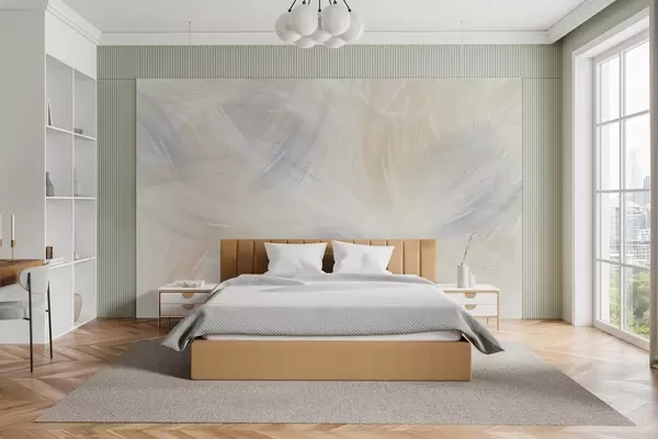 Fototapeten luftige Federn in Blau- und Beigetönen N° w04071v2