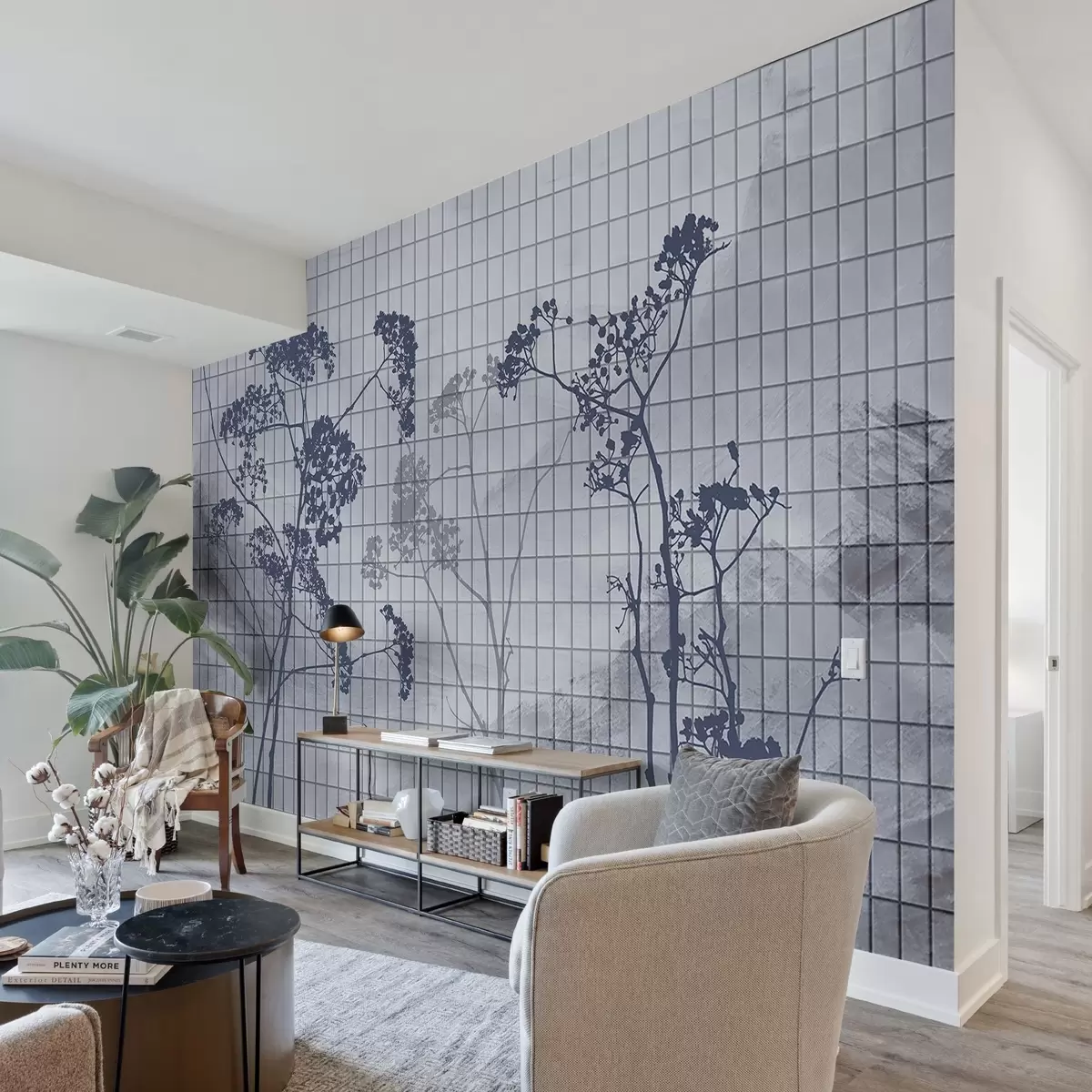 Sie können die Tapete sehr vorsichtig mit einem leicht feuchten Schwamm reinigen. Wir raten jedoch davon ab, die Tapete zu schrubben oder Reinigungsmittel zu verwenden, da dies die Oberfläche und die Farben der Tapete beschädigen kann.