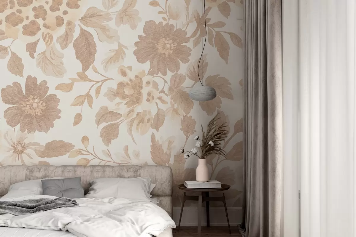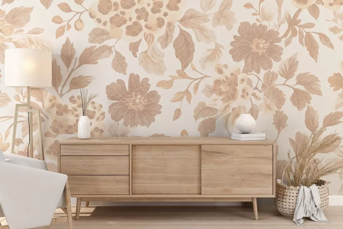 Fototapeten Blumen im Boho-Stil mit Leopardenmuster, Farbe beige N° w04114