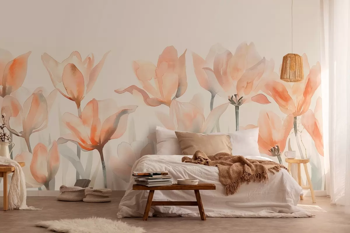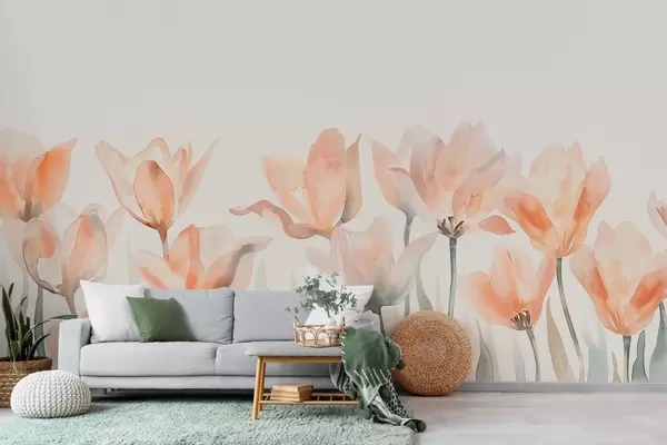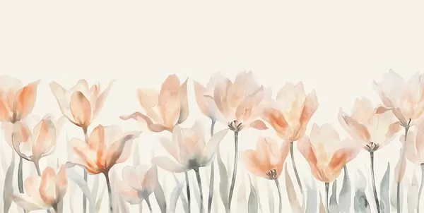 Fototapeten frische Aquarelltulpen, die von unten wachsen N° w04204