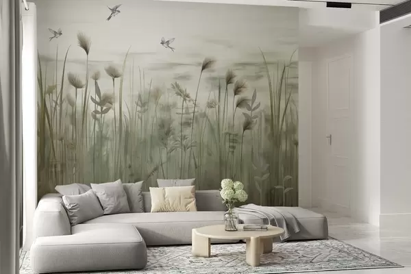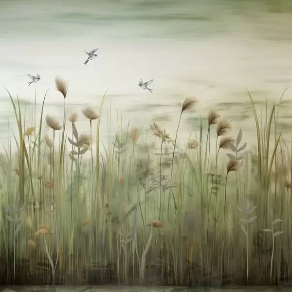 Fototapeten Leichte Version einer Graslandschaft mit Schwalben N° w04258