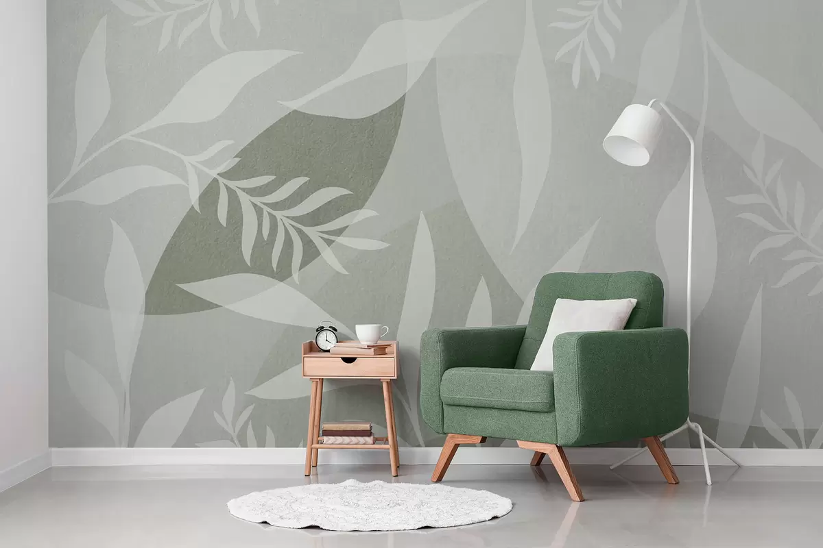 Fototapeten Silhouetten von Zweigen auf einem Hintergrund von abstrakten Kreisen, Schattierungen von Grün N° w04270v2