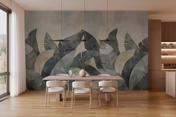 Fototapeten strukturierte Bananenblätter in Naturtönen von Beige, Grün und Grau N° w04285