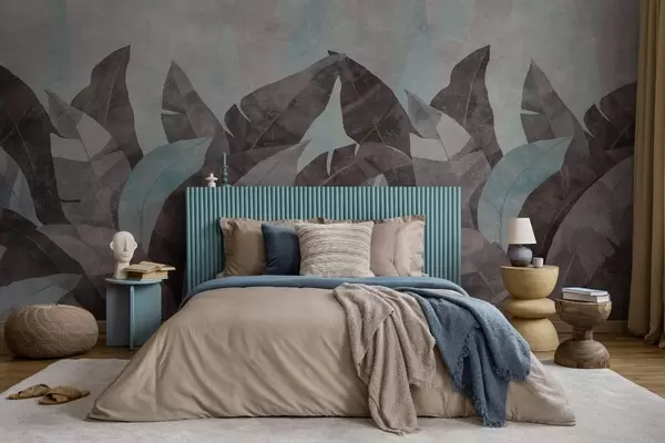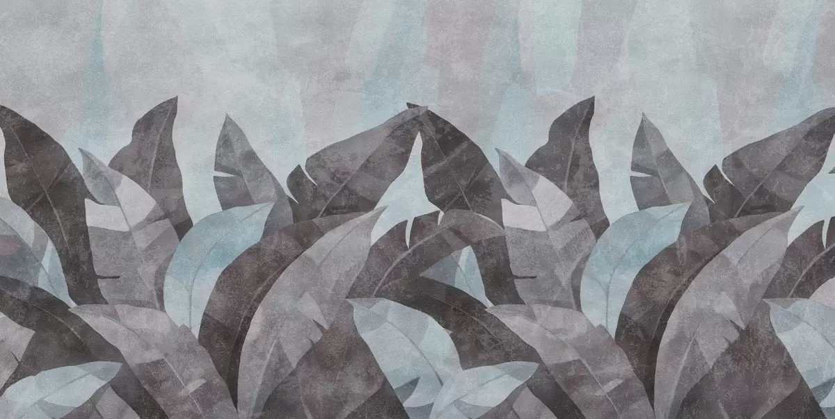 Fototapeten strukturierte Bananenblätter in Blau- und Grautönen N° w04285v2