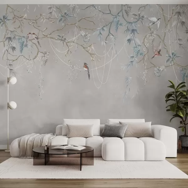Fototapeten Variante mit sehr hellem Hintergrund und blauen Akzenten N° w04302v2