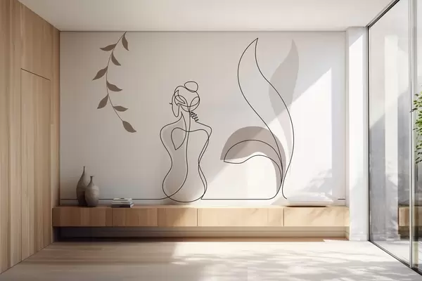Fototapeten lineare Silhouette einer Frau und Blätter N° w04303