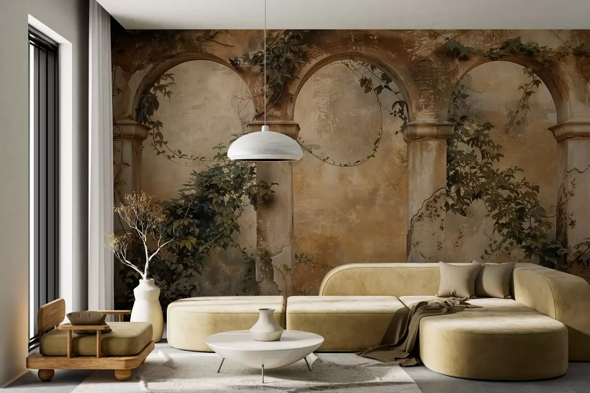 Fototapeten getönte Retrobögen mit Efeu N° w04304