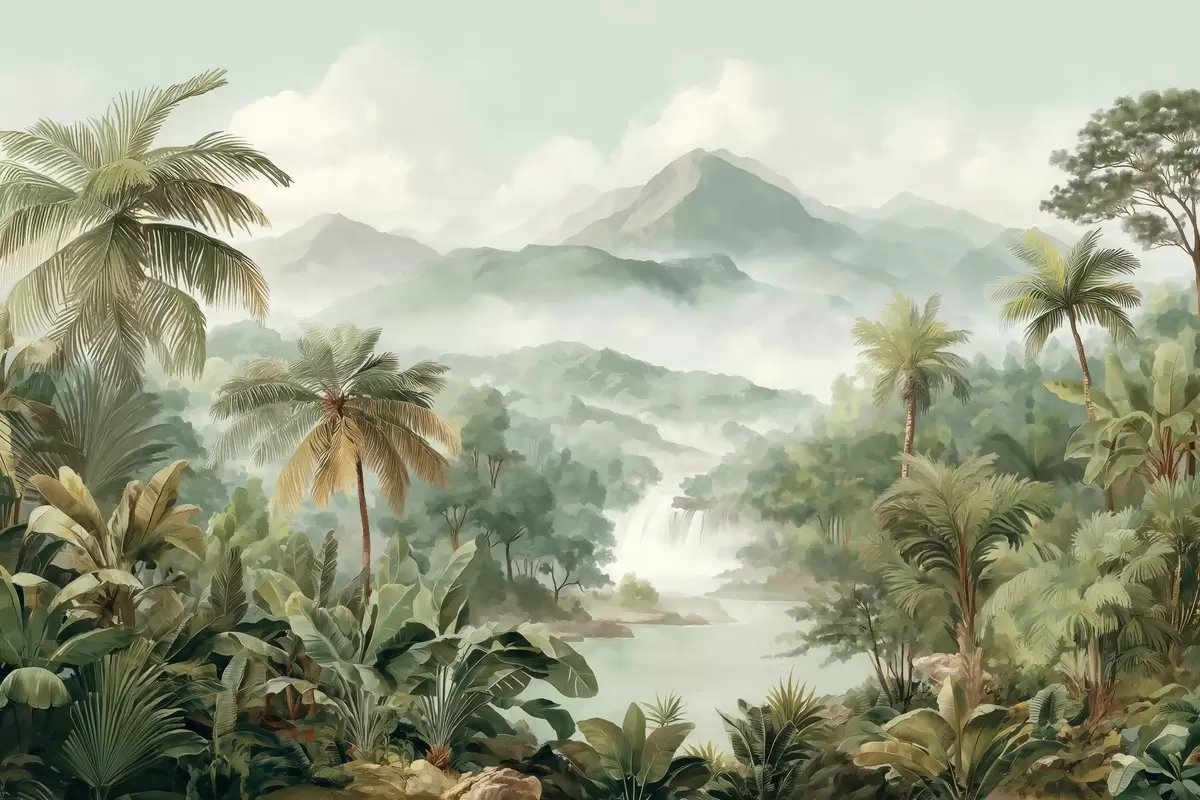 Fototapeten tropischer Dschungel mit Wasserfall N° w04306
