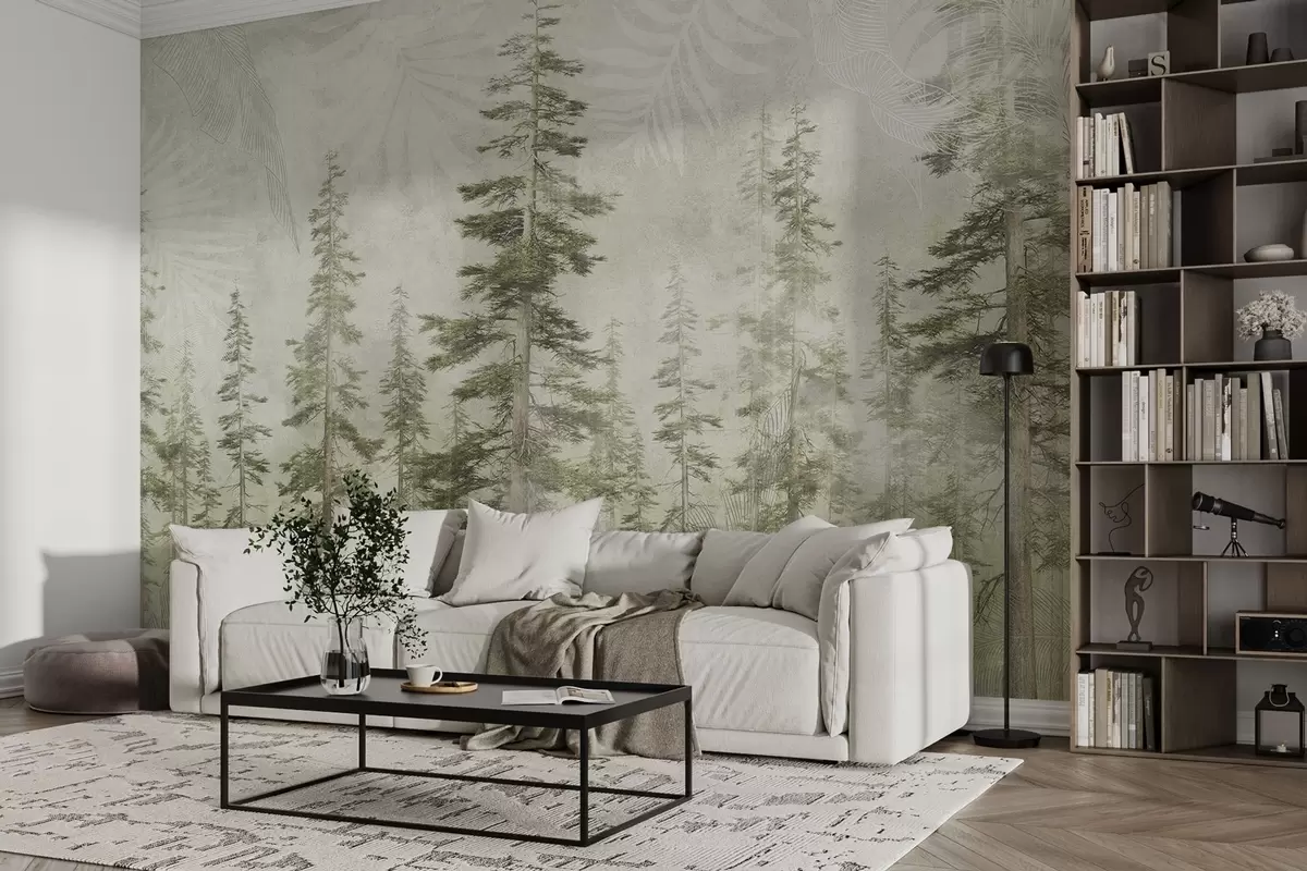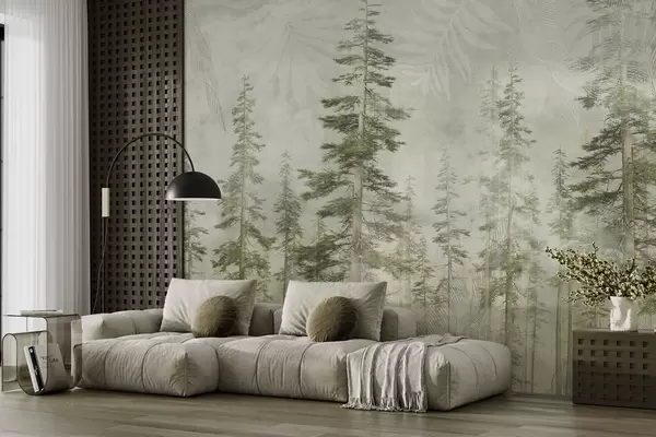 Fototapeten Kiefernwald mit Vintage-Papiertextur und feinen Mustern N° w04342