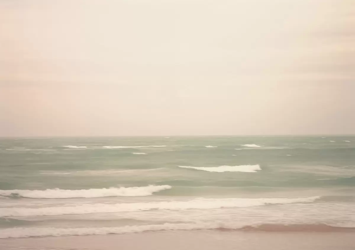 Fototapeten Sanfte rosa-grüne Meereslandschaft mit sanften Wellen N° w04348
