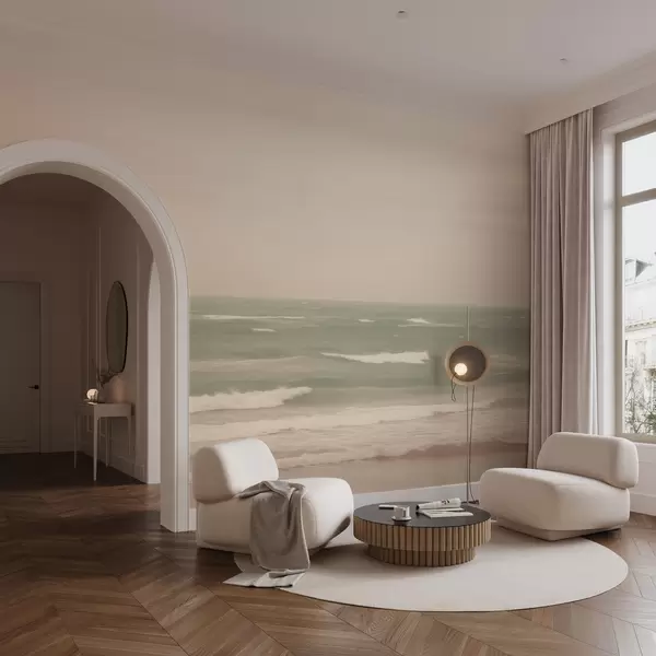 Fototapeten Sanfte rosa-grüne Meereslandschaft mit sanften Wellen N° w04348