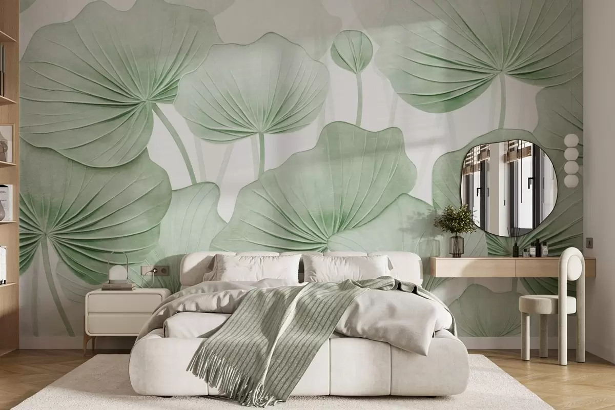 Fototapeten Lotusblätter mit imitierter Distressed-Struktur N° w04412