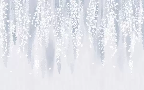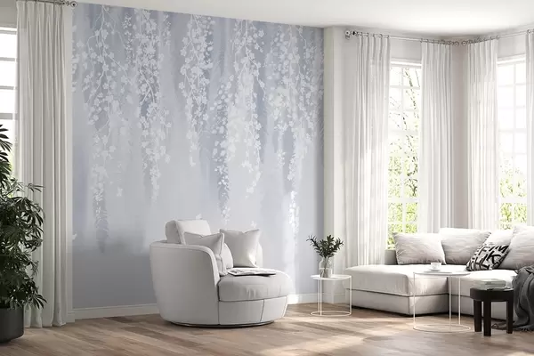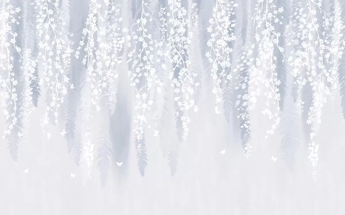 Fototapeten Kühle blaue Version von Zweigen mit weißen Blüten N° w04417v2