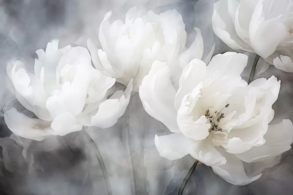 Fototapeten Weiße Blumen auf einem nebligen, zarten Hintergrund N° w04441