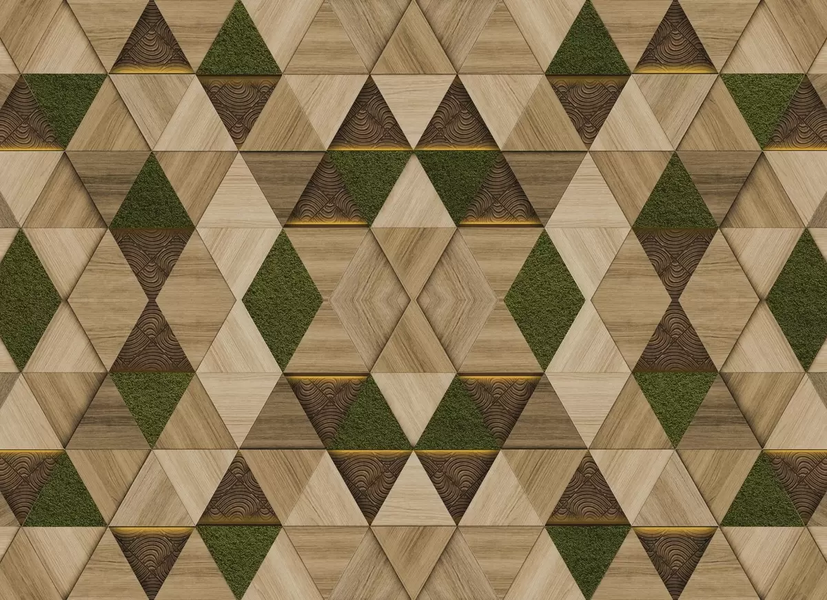 Fototapeten Geometrisches Holzornament mit Moos N° w04459