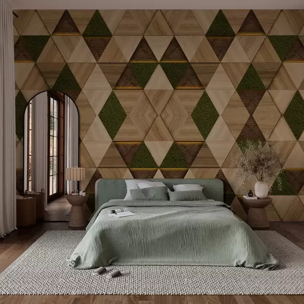 Fototapeten Geometrisches Holzornament mit Moos N° w04459