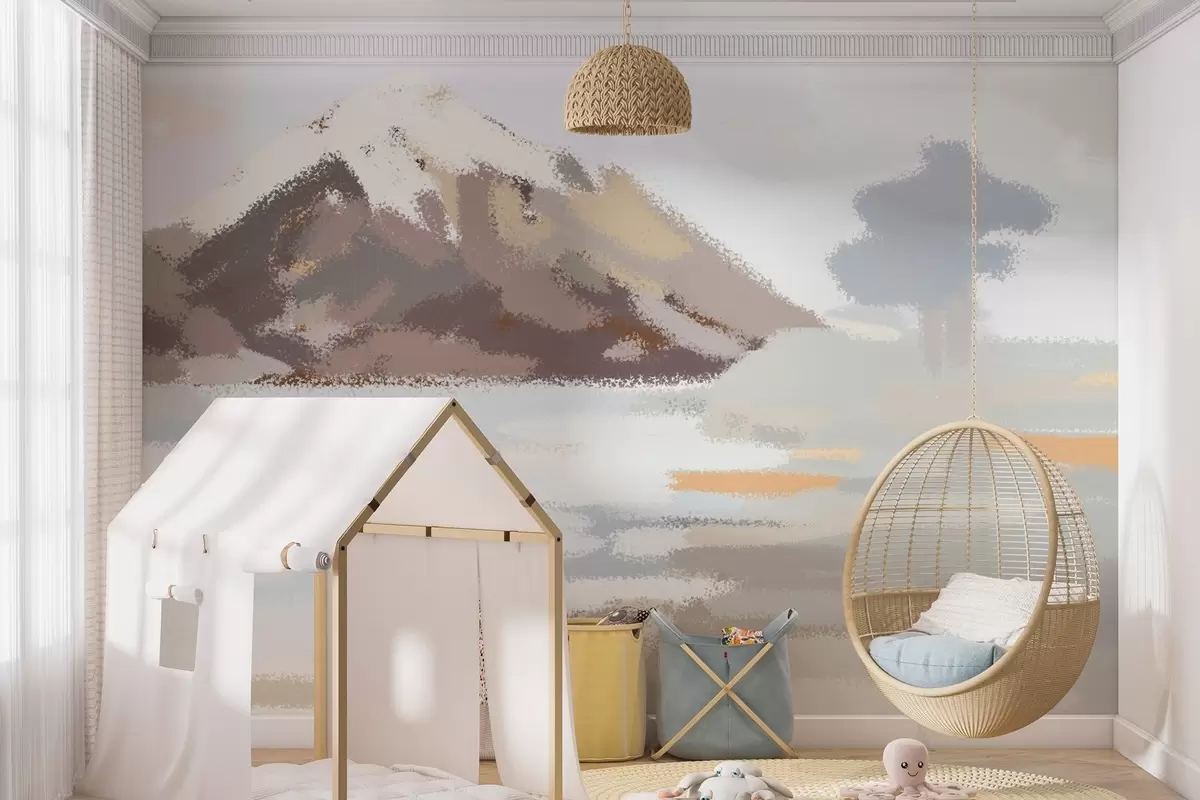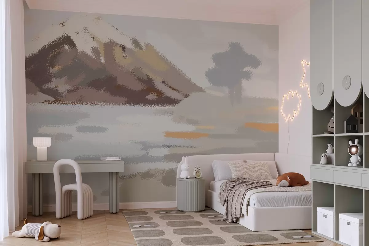 Fototapeten abstrakte Landschaft im Stil einer Kinderzeichnung N° w04498