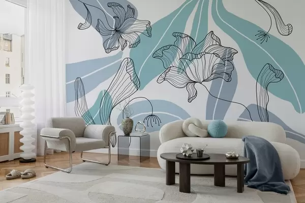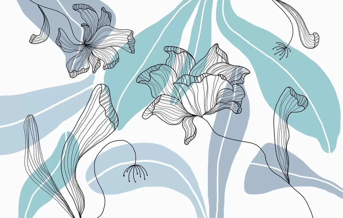 Fototapeten abstrakte Blätter und Blumen in Blautönen N° w04499v2