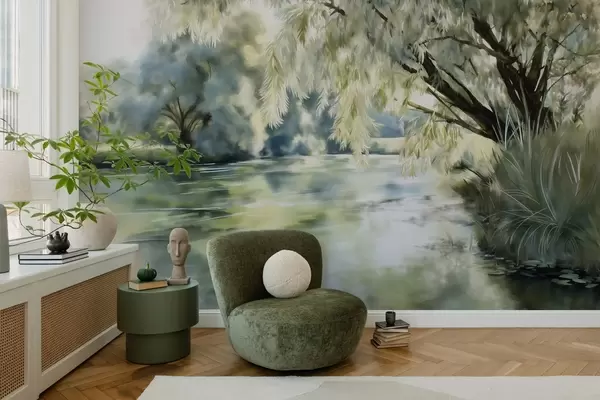 Fototapeten baum im Aquarellstil über dem See N° w04501
