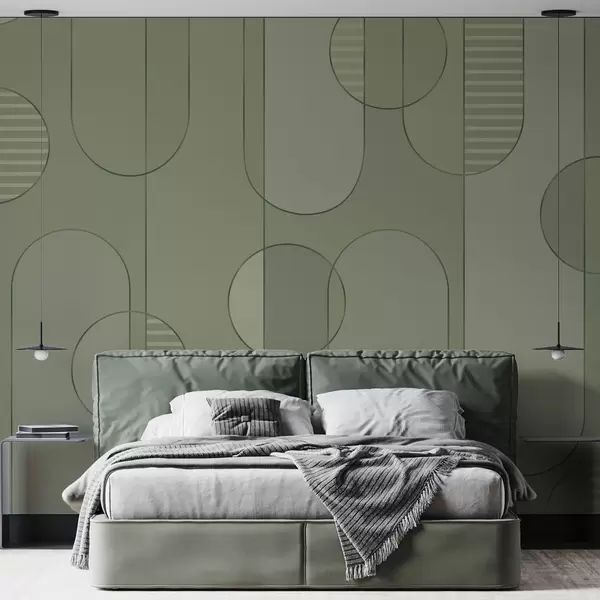 Fototapeten Geometrische Abstraktion mit hellgrüner Farbpalette N° w04523v1