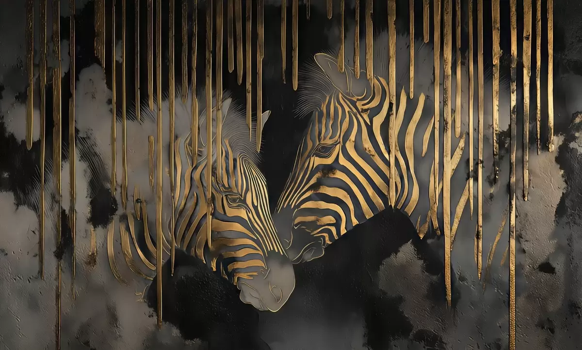 Fototapeten Zebras vor abstraktem schwarzen Hintergrund N° w04548