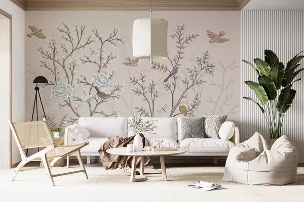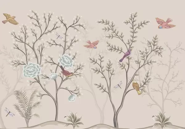 Fototapeten Bäume mit Vögeln und Blumen N° w04605