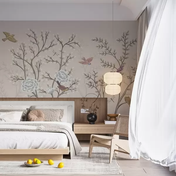 Fototapeten Bäume mit Vögeln und Blumen N° w04605