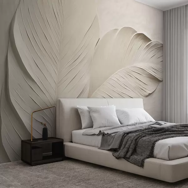 Fototapeten Geprägte beige Blätter mit weichen Schatten N° w04614